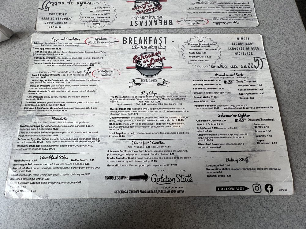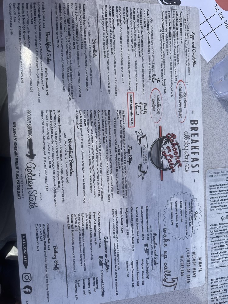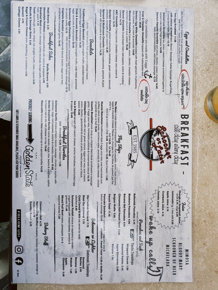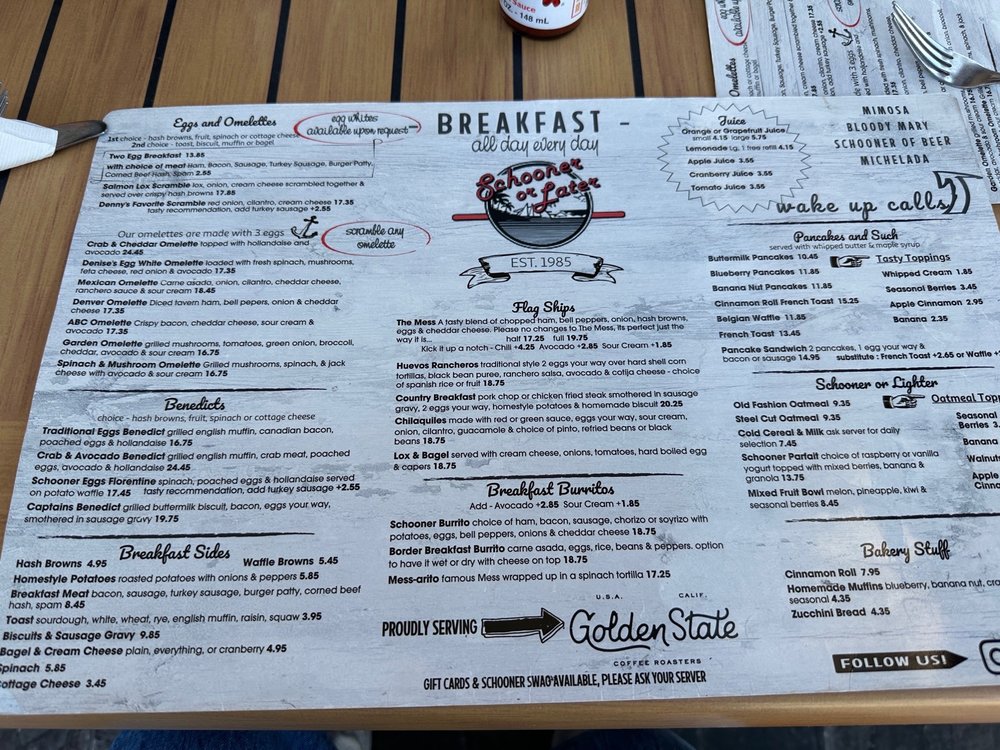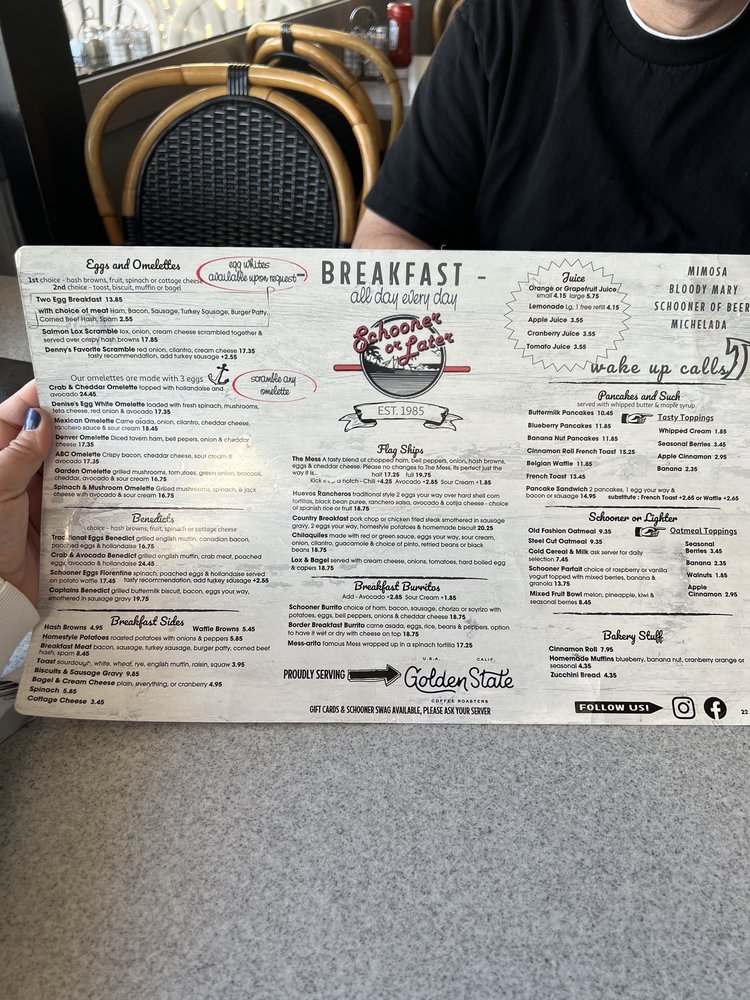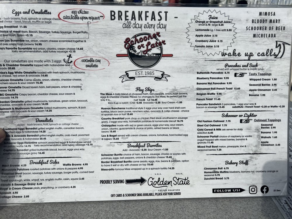 Schooner or Later is a waterfront gem in Long Beach, CA, offering American breakfast, brunch, and sandwich options. With a range of vegan and vegetarian choices, the menu caters to diverse preferences. The location provides a picturesque setting, complete with ocean views and outdoor seating. Customers rave about the delicious food, friendly service, and relaxing ambiance. Must-try dishes like the Crab and Cheddar Omelette, Buttermilk Pancakes, and Eggs Benedict keep diners coming back for more. The lively atmosphere, great selection of food, and top-notch service make Schooner or Later a standout choice for a satisfying meal with a view.